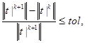 где tol - заданный критерий сходимости, значение которого обычно меньше чем 103.