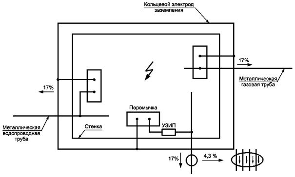 Для определения нагрузки на УЗИП необходимо знать распределение тока при прямом попадании молнии в пределах электроустановки здания.