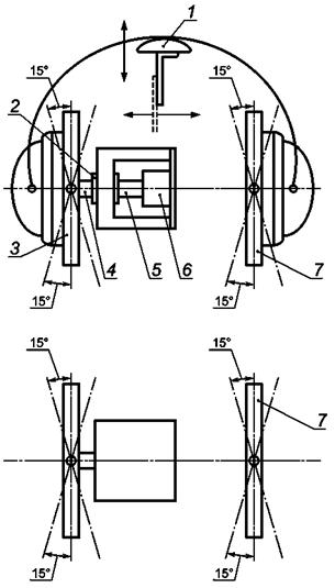 соединительный штифт; Примечание - Модели уха (см. рисунок А.4), крепятся к пластинам так, чтобы отверстия в центре моделей находились на горизонтальной оси, проходящей через датчик силы. |