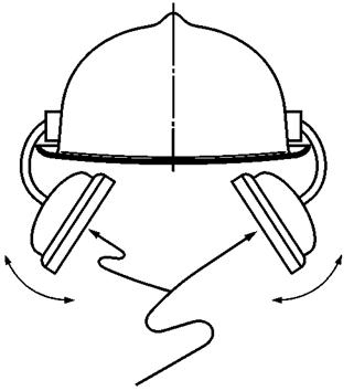 3.9 рабочее положение: Положение наушников, при котором чашки находятся ниже уровня нижнего края корпуса каски и амортизаторы контактируют с околоушной поверхностью или ушными раковинами.