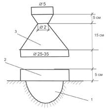 1 - лунка; 2 - кольцо; 3 - воронка