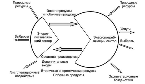 - энергопоставляющий сектор, который включает в себя нефтяную, угольную, газовую, тепловую и электрическую отрасли промышленности и такие отрасли, которые поставляют на рынки различные топлива, основанные на солнечном излучении, биомассе и вторичных энергетических ресурсах;