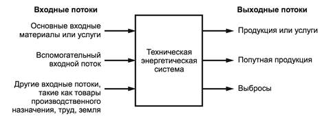 3.3 Продукты, которые являются выходами технической энергетической системы, являются входами в другие технические энергетические системы или используются для предоставления услуг. В конце срока их эксплуатации они повторно используются внутри техносферы или поступают обратно в природную среду как выбросы. Таким образом, входами в техносферу являются природные ресурсы, а выходами - услуги, предоставляемые обществу, выбросы и эксплуатационные воздействия (см. рисунок 2).