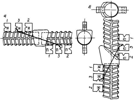 а - при горизонтальном положении стержней; б - при вертикальном положении стержней