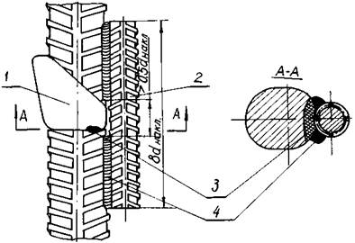 Исправление некачественных сварных соединений осуществляется посредством усиления их круглой накладкой площадью Fн > 0,4Fст (Fн - площадь накладки, Fст - площадь стержня) по схеме, приведенной на рис. 7.