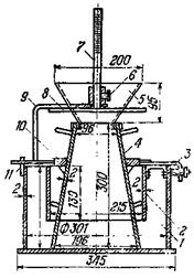 Жесткость бетонной смеси определяется техническим вискозиметром. Технический вискозиметр (см. рисунок) состоит из: