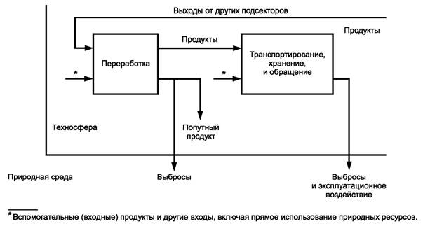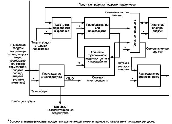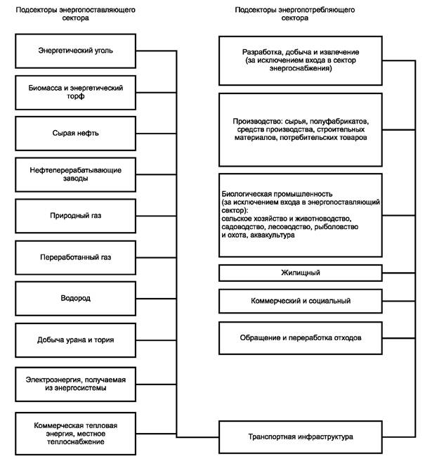 В соответствии с ИСО 13600 техносфера делится на два сектора: сектор поставки (далее - энергопоставляющий сектор) и сектор потребления (далее - энергопотребляющий сектор) энергопродукта. Дальнейшее деление на подсекторы показано на рисунке 1, а также в приложении А.