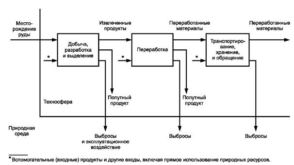 Главным входом в модельную ячейку является или природный ресурс, или выход из предыдущей модельной ячейки. Каждая модельная ячейка также имеет входы вспомогательных материалов, включая энергопродукты и услуги. Другие входы представляют собой основной капитал, т. е. средства производства, строительные материалы, инвестиционные товары, труд и землю.