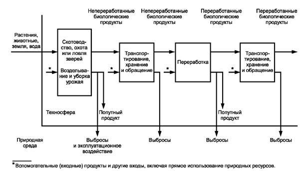 - вторая часть состоит из таких экс-систем энергопродукта «от начала-до ворот», которые производят основные средства производства, источники и услуги, которые необходимы как вход к первой части, и используют побочные продукты, поставленные первой частью.
