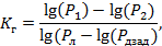 Показатель герметичности - это отношение разности между логарифмами значения давления, измеренного в момент отключения насосов, и значения давления в конце периода измерений к разности логарифмов значения давления в лаборатории и достигнутого давления, соответствующего заданному, при одном и том же периоде измерения.