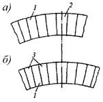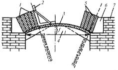Контроль толщины и заполнения швов. Контроль размеров и расположения температурных швов. Контроль совпадения плоскости укладываемых кирпичей широкой грани с радиусом печи. |
