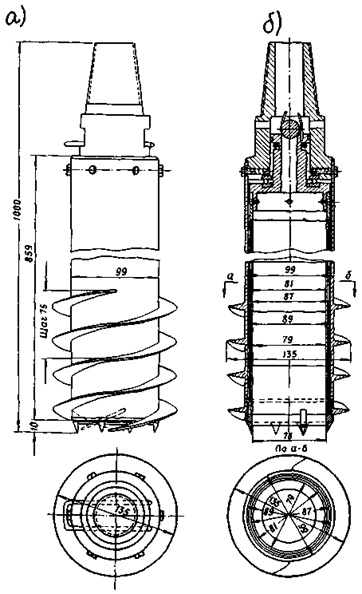 Внутренний диаметр башмака грунтоноса должен быть на 1 - 2 мм меньше внутреннего диаметра грунтоприемной гильзы для устранения трения грунта по стенке гильзы. Обуривающий грунтонос системы К.И. Тыльчевского показан на рис. 2.