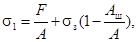 Напряжение q = F/A при больших осевых деформациях образца под нагрузкой следует определять с учетом измерения площади поперечного сечения в процессе опыта. Площадь поперечного сечения образца Ai для любого момента деформирования может быть приближенно определена из условия постоянства объема материала по формуле