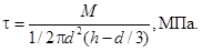 8.2. Прочность грунтов малой степени литификации для установления тиксотропии рекомендуется определять лопастным прибором (крыльчаткой). Лопасти должны иметь высоту 30 мм и диаметр 15 мм. При испытании лопастным прибором грунт сдвигается по боковой поверхности и основанию цилиндра, вырезаемого лопастями в грунте. Для этого четырехлопастную крыльчатку погружают в грунт и повертывают ее вокруг оси. Измеряется крутящий момент М, затрачиваемый на вращение крыльчатки. Расчетное уравнение имеет следующий вид: