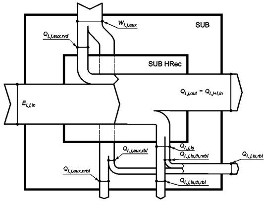 Расчеты энергетических потерь каждой части установки, подсистемы системы теплоснабжения здания установлены в [4] - [15]. Тепловые потери при передаче тепла, вторичные тепловые энергоресурсы, возвратные тепловые потери и дополнительная энергия частей установок и подсистем системы теплоснабжения здания, которые учитываются при определении общей потребляемой энергии в здании, суммируются. Тепловые потери системы теплоснабжения относятся к общей потребляемой энергии в здании согласно [16].