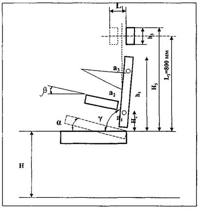 Рис. 1. Конструктивные параметры кресла (вид сбоку)