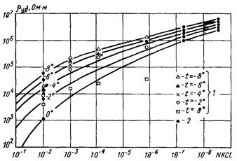 1.10. УЭС льда также зависит от концентрации (минерализации) замерзшего электролита и температуры. Характер этой зависимости показан на рис. 4.
