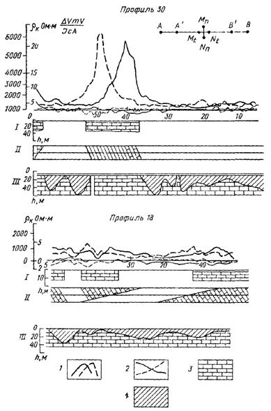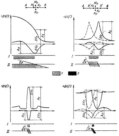 12.13. С увеличением мощности перекрывающих отложений эффективность любых видов электропрофилирования снижается и роль основных методов переходит к ВЭЗ МДС двусторонними трехэлектродными установками. Вспомогательные методы остаются теми же.