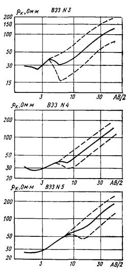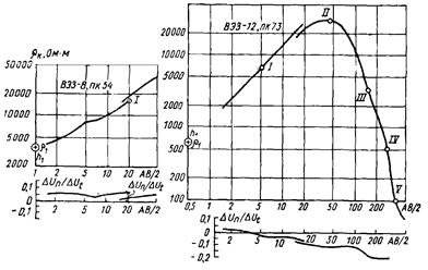 Рис. 58. Кривые ρK ВЭЗ, полученные над пещерой