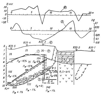 4 - график ЕП; 5 - график Δg; 6 - точки ВЭЗ