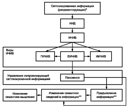 * Сеттлинг информации может проводиться по ее информативному, лингвистическому представлению. ** Импровизирующая информация (информация, улучшающая восприятие, осмысление сведений, содержащихся в ней). Рисунок А.1 - Схема ЕИЧИВ в эргатической ИИД оператора |