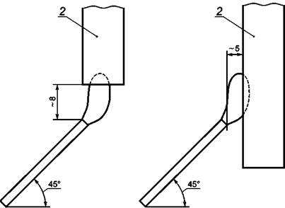 Для того чтобы испытательное пламя могло быть приложено в наиболее неблагоприятном направлении, трубку горелки изгибают.