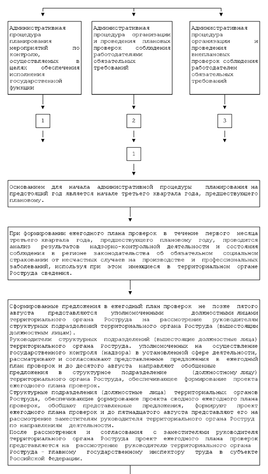 Административный регламент исполнения Федеральной службой по труду и занятости государственной функции по осуществлению федерального государственного надзора за соблюдением требований, направленных на реализацию прав работников на получение обеспечения по обязательному социальному страхованию от несчастных случаев на производстве и профессиональных заболеваний, а также порядка назначения, исчисления и выплат пособий по временной нетрудоспособности за счет средств работодателей*1 определяет сроки и последовательность действий (административных процедур) Федеральной службы по труду и занятости и ее территориальных органов*2, при исполнении государственной функции по осуществлению федерального государственного надзора за соблюдением требований, направленных на реализацию прав работников на получение обеспечения по обязательному социальному страхованию от несчастных случаев на производстве и профессиональных заболеваний, а также порядка назначения, исчисления и выплаты пособий по временной нетрудоспособности за счет средств работодателей*3.