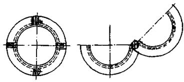5.2. Для обеспечения геометрических размеров сечения и повышения устойчивости при центрифугировании стального цилиндра его оснащают съемными бандажами с их равномерным распределением по длине цилиндра в обе стороны, начиная от середины.