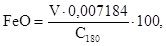 Количество закиси железа, %, рассчитывают по формуле