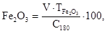 Количество общего железа, в пересчете на Fe2O3, %, вычисляют по формуле
