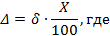 δ - граница относительной погрешности методики (характеристика погрешности по диапазону концентраций, таблица), %.