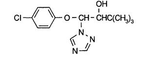 Триадименол (ИЮПАК): смесь двух диастереомеров (1RS, 2RS)-1-(4-хлорфенокси)-3,3-диметил-1-(1Н-1,2,4-триазол1-1-ил)бутан-2-ол (стереомер A); (1RS, 2SR)-1-(4-хлорфенокси)-3,3-диметил-1-(1Н-1,2,4-триазол1-1-ил)бутан-2-ол (стереомер В).