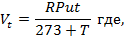 R - коэффициент, равный 0,357 для атмосферного воздуха.