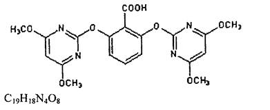 2,6-Бис[(4,6-диметоксипиримидин-2-ил)окси]бензойная кислота (IUPAC).