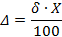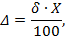 δ - граница относительной погрешности методики (показатель точности в соответствии с диапазоном концентраций), %.