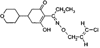(EZ)-(RS)-2-{1-[(2Е)-3-хлораллилоксиимино]-пропил}3-гидрокси-5-(пергидропиран-4-ил)-циклогек-2-ен-1-он (IUPAC)