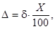 δ - граница относительной погрешности методики (показатель точности по диапазону концентраций, таблица), %.