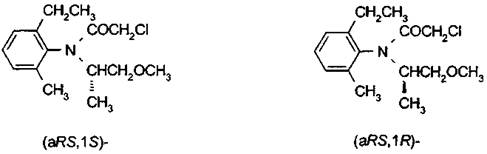 Смесь изомеров (aRS, 1S)-2-хлор-6'-этил-N-(2-метокси-метил-этил)ацето-о-толуидид и (aRS, 1R)-2-хлор-6'-этил-N-(2-метокси-метил-этил)ацето-о-толуидид = 80 - 100 %:20 - 0 % (IUPAC)