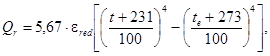 где ered - приведенная степень черноты системы «среда - поверхность конструкции», равная 1/(1/e + 1/el - 1).