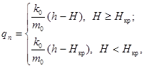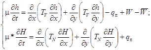 h(х, у, t), H(х, у, t) - уровень и напор в верхнем и нижнем