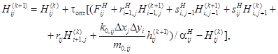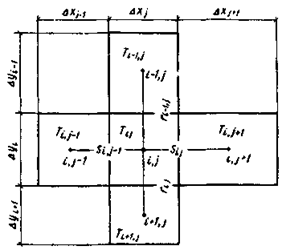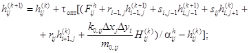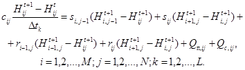 Si, j-1(Hi, j-1 - Hij) + Sij(Hi, j+1 - Hij) + ri-1,j(Hi-1, j - Hij) + rij(Hi+1,j - Hij) + Qп, ij = 0, (10)