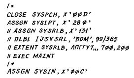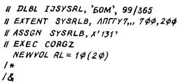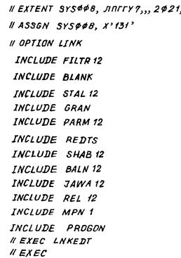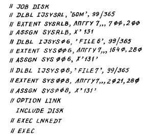 Как отмечалось в п. 4.39, наборы данных в виде двумерных массивов (50´50) организовывались на внешнем носителе (пакете дисков) с помощью рабочих файлов (для целых массивов ¢FILE¢ Т, вещественных - ¢FILE6¢) прямого доступа. Для этого на первом этапе осуществлялась перфорация двумерных массивов, на втором - запись этих массивов в соответствующие файлы на пакете дисков с помощью программы DISK.