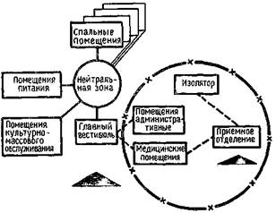 Спальные помещения должны быть запроектированы таким образом, чтобы можно было выделить в зависимости от потребности изолированные группы помещений для проживания взрослых с детьми различного возраста: дошкольников, школьников младшего и школьников среднего возраста. Помещения питания, культурно-массового и медицинского обслуживания должны быть одинаково удобно доступны для семей с детьми разных возрастных групп. В состав приемно-административных помещений должно обязательно входить приемное отделение.