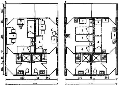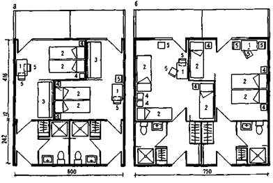 а) расчлененные компоновочные схемы зданий с относительно небольшой этажностью (до 5 этажей), обеспечивающие необходимое зонирование и гибкость использования при заселении спальных помещений семейными с детьми разного возраста, а также изоляцию в случае надобности семейных с детьми от взрослых, отдыхающих без детей в переходные периоды года;
