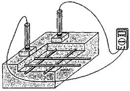 Один из соединительных проводов подсоединяют к арматуре, очищенной от окислов согласно разделу 6. Другой провод подключают к электроду сравнения. Между арматурой и электродом сравнения подключают омметр. Электрод сравнения устанавливают на поверхности бетона над арматурным стержнем. Измеряют электрическое сопротивление цепи «электрод - бетон - арматура».