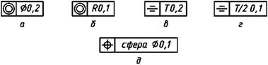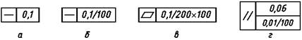 Примеры указания условных обозначений допусков формы и расположения поверхностей
