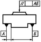 Допуск перпендикулярности оси выступа в поперечном направлении - 0,2 мм, в продольном направлении - 0,1 мм. База - основание |
