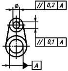 Допуск параллельности оси отверстия относительно оси отверстия А - Æ 0,2 мм |