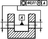 Допуск соосности двух отверстий относительно их общей оси - Æ 0,01 мм (допуск зависимый) |