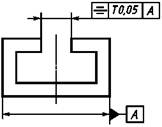 Допуск симметричности паза - Т 0,05 мм. База - плоскость симметрии поверхности А |